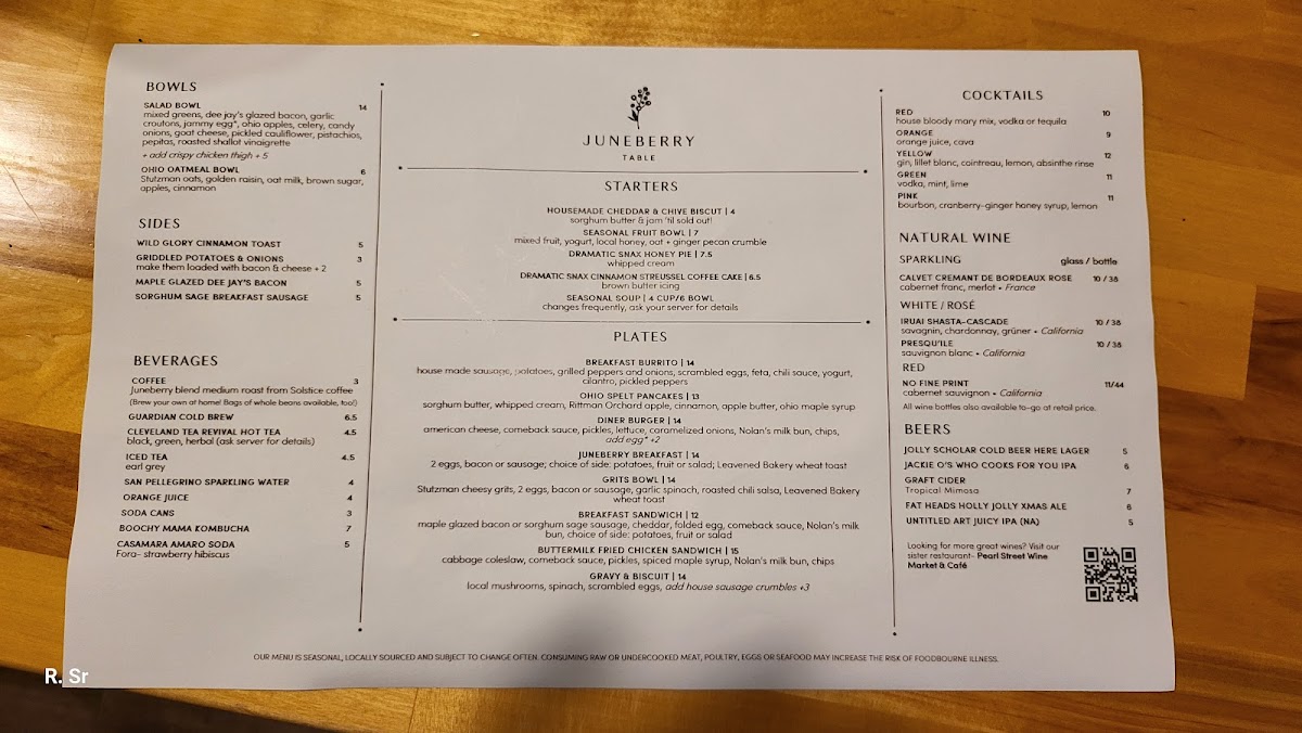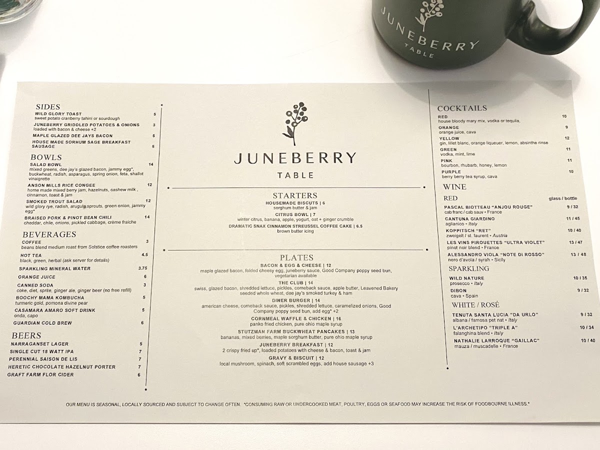 Customers rave about the Cheddar & Chive Biscuit, warm and buttery, served with sorghum butter and jam, making it an undeniable highlight. The a la carte menu offers generous portions, ensuring satisfaction without the heavy feeling. Moreover, Juneberry Table is a delightful spot to unwind, where friendly service complements the delicious food. Don't miss out on the pancakes, especially the apple variant, which has been highly praised for its fluffy texture. Expect a cozy dining experience worth every penny!
