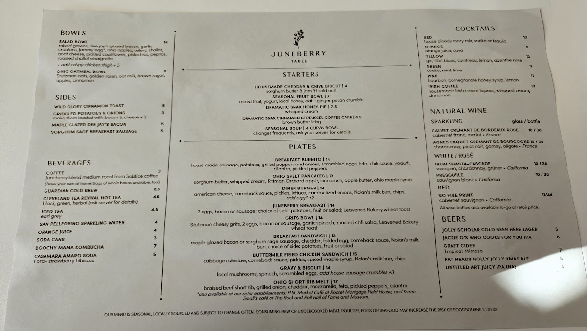 Welcome to Juneberry Table, a charming eatery nestled at 3900 Lorain Ave, Cleveland. This intimate venue features a cozy atmosphere with limited seating, perfect for those looking to enjoy a heartfelt meal. The all-day menu boasts standout dishes like the Breakfast Burrito, filled with savory sausage and perfect seasoning, and the ever-popular Breakfast Sandwich, customizable with housemade sorghum sausage or crispy maple-glazed bacon.